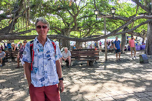Banyan Tree ParkWhat first attracted me to Lahaina was a picture of its famous banyan tree, one of the largest in the United States. Imported from India in 1873, this sprawling tree now stands over 60 feet high and sprawls outward the length of an entire city block. Although this seems like a clump of trees, it is actually only one tree, which spreads by producing aerial roots that hang down and take root wherever they touch the ground. It was probably one of the most beautiful trees I have ever seen.